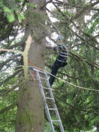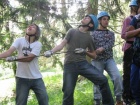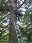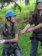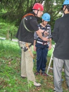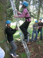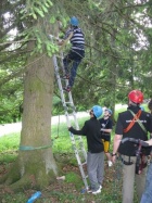 Am ersten Tag sind die "kleinen" Jungs noch alleine. Der Ablauf des Projektes wird durchgegangen, Ängste werden genommen. Die Jungs lernen das Klettern und Sichern im Baum. Sie bereiten sich auf die "großen" Jungs vor, die am nächsten Tag anreisen werden.